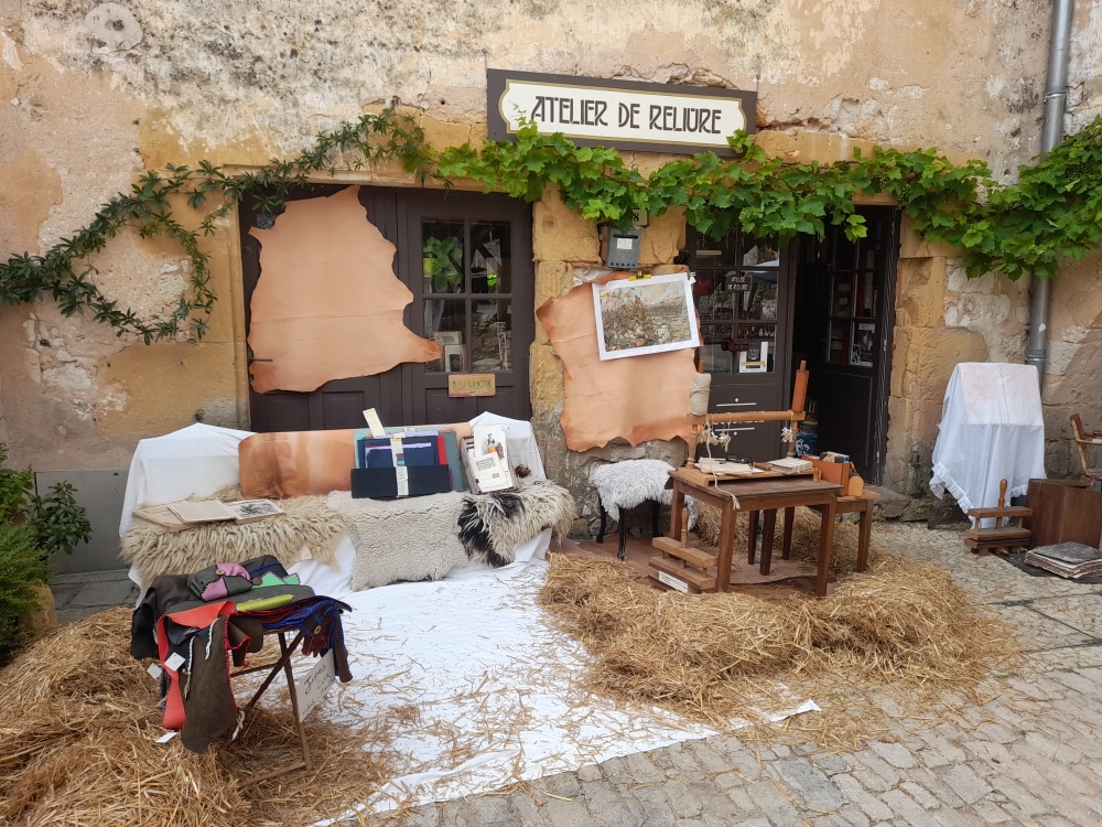 C’est dans l’atelier boutique « cuir et papier » situé à Monpazier que je travaille et reçoit mes clients. La création commence avec l’observation de la matière. Je relie des livres de toute sorte et restaure également cuir et papier. Chaque livre est unique et chaque restauration nécessite observation, réflexion et anticipation.